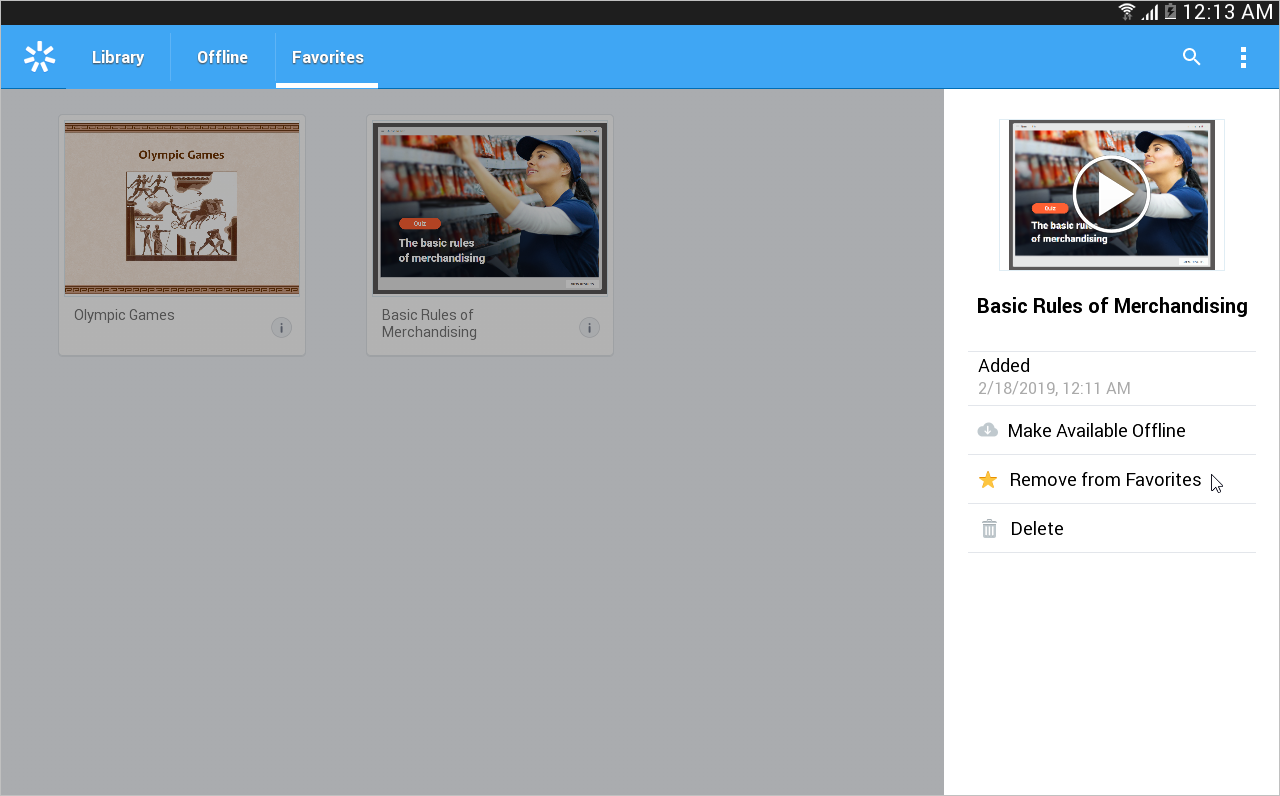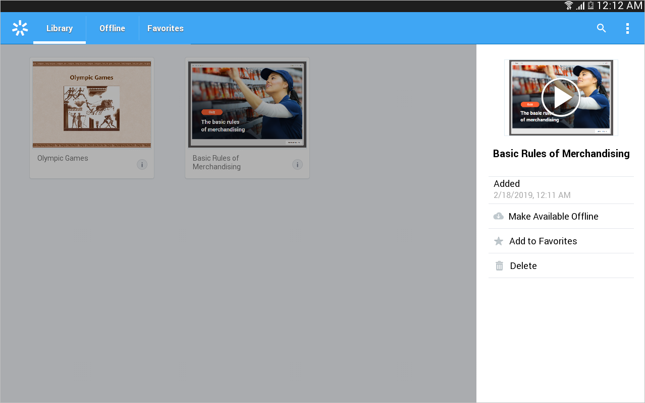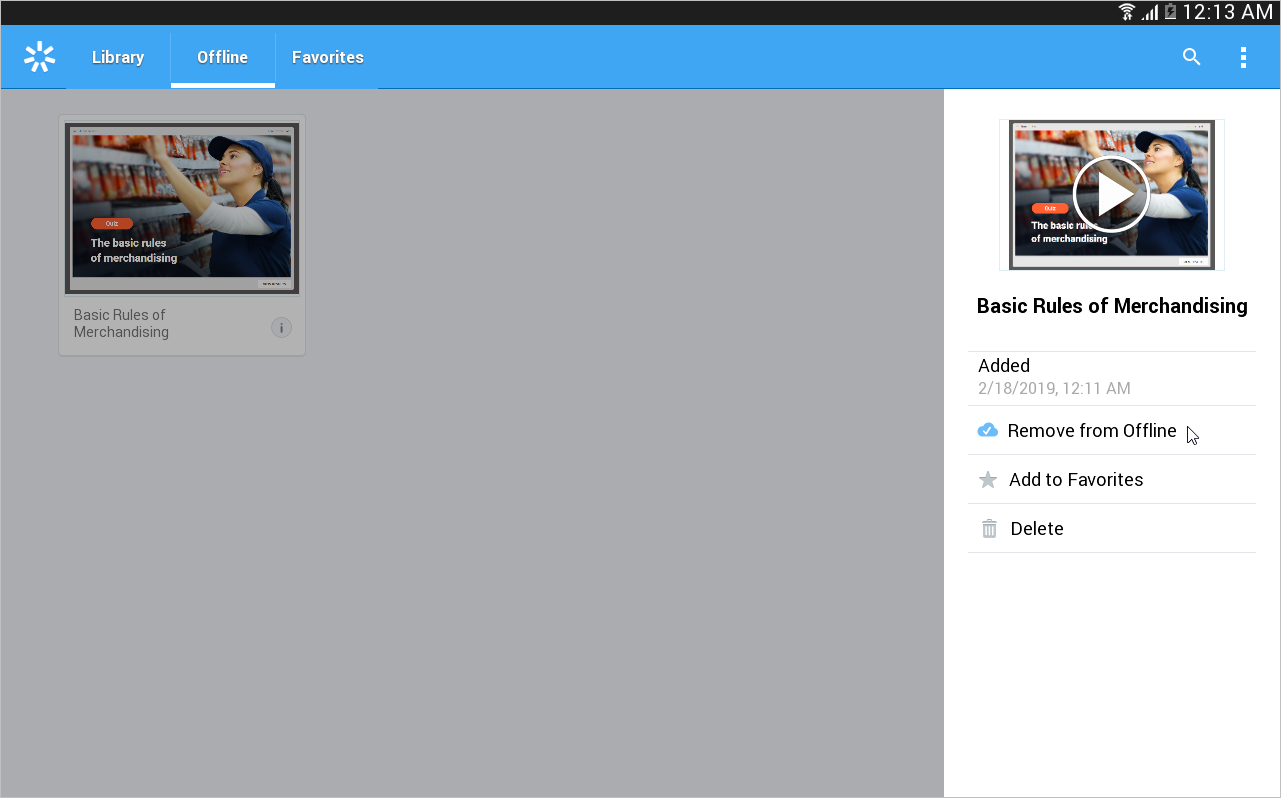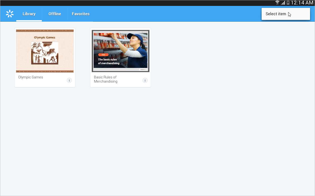 The application will download the quiz to the device and your users will have anytime access to it regardless of the internet connection. To view all offline materials, tap the top left corner of the screen and choose the Offline section.