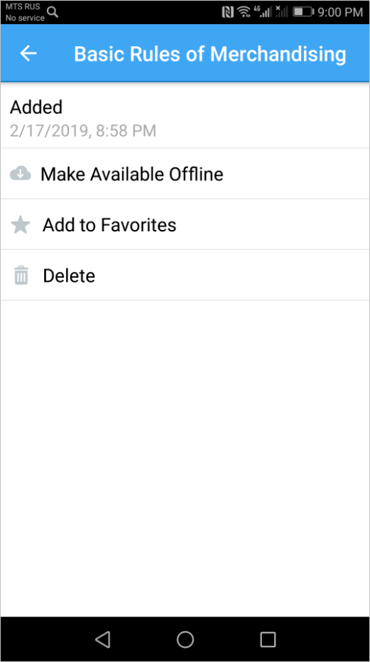 To delete the material from the downloads, you need to tap the Remove from Offline option.
