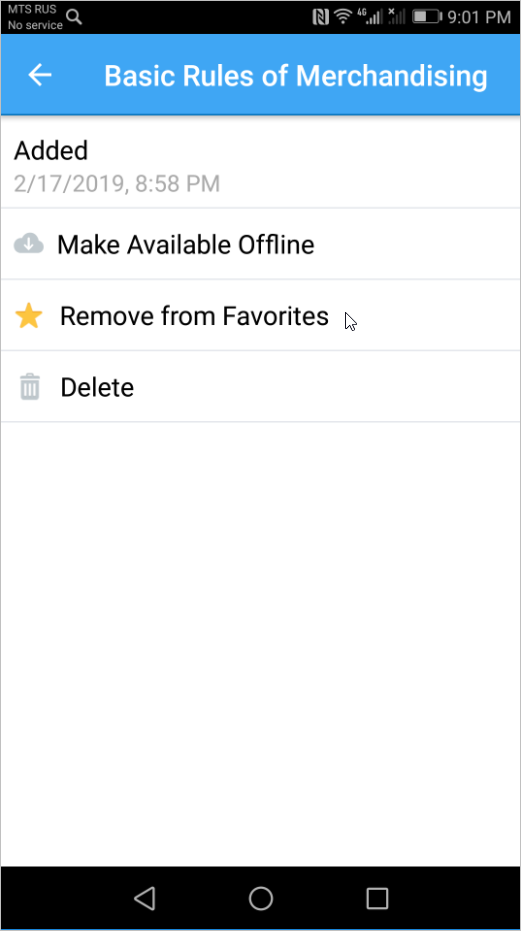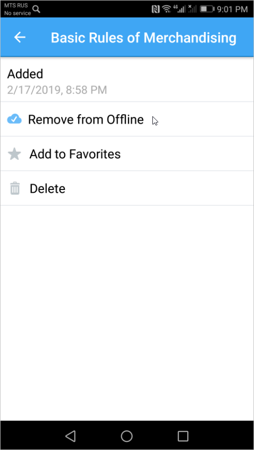 To delete the material from the tablet, you need to select Remove from Offline in the options pane.