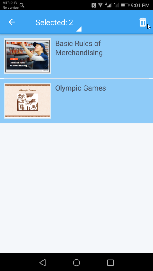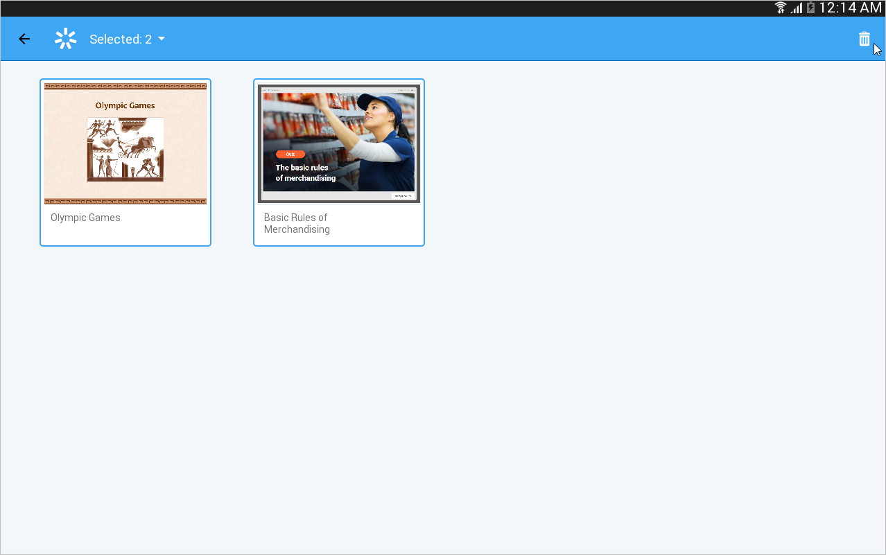 Choose the content items you want to remove and tap the trash icon at the top right corner. The materials will be deleted from iSpring Play.