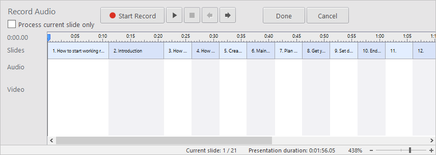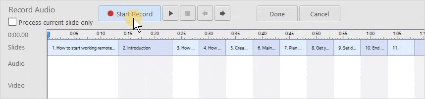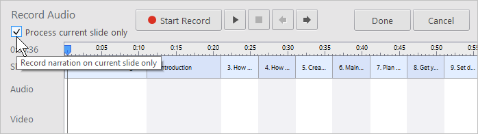 4. If you want to record an audio narration only for one slide, select Process current slide only.