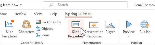 - Click the Slide Properties button on the iSpring Suite toolbar.