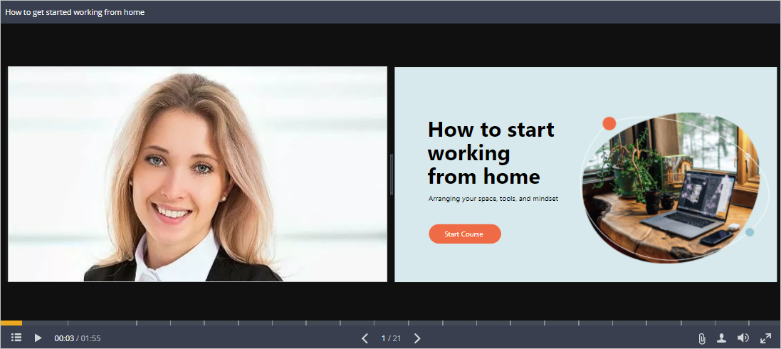 The slide and the video take up an equal amount of available space: 50%/50%.