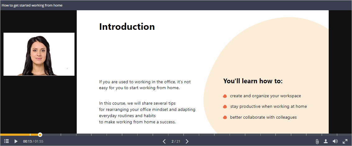 The video’s portion is increased and is displayed at the left; the slide’s portion appears at the right and is much smaller.